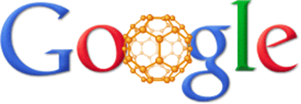 2010年には、C60フラーレン発見25年を記念して、Googleホームページのロゴが特別バージョンになったこともあります(Fig.3)。